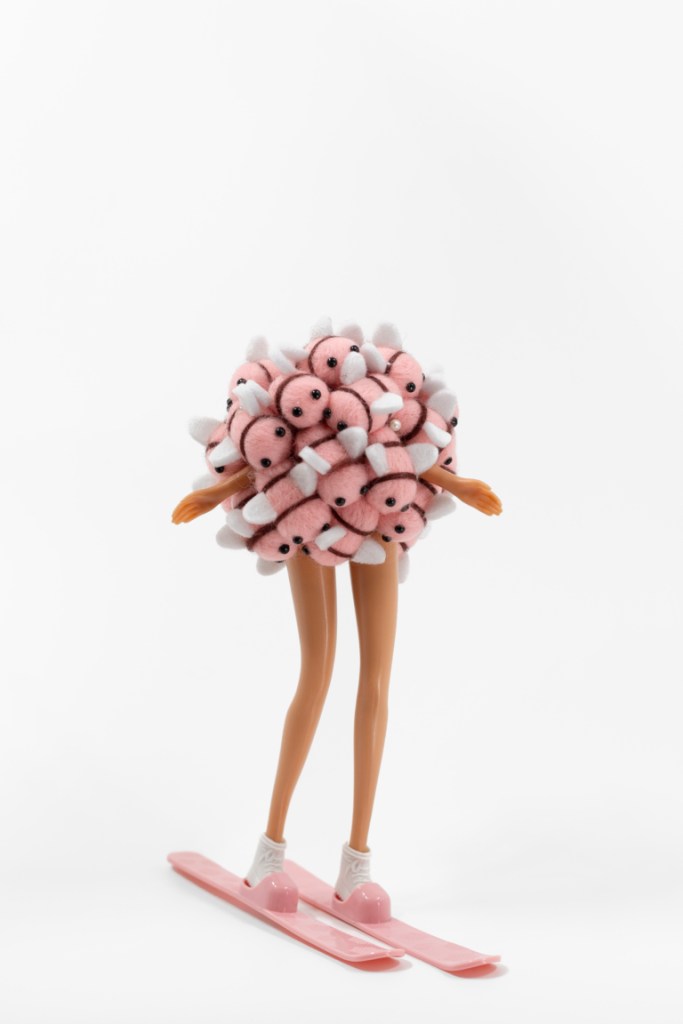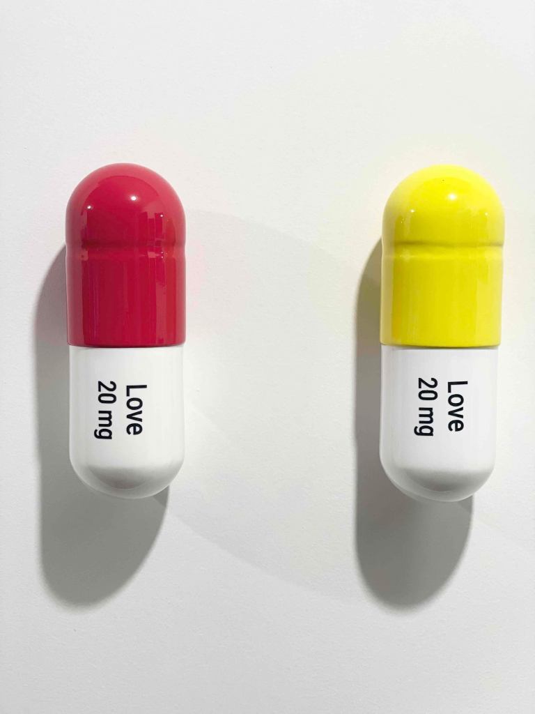 Mijn oog valt wel op kunstwerken met een knipoog naar objecten uit het dagelijks leven. Herkenbare objecten in ongewone situatie. Porseleinen aardappels (Wil van Blokland), de geplette auto’s van Job van den Berg en kaaspost van Caz Egelie (beide kunstenaars vertegenwoordigd door de Post Modern Collection), een boormachine van hout (Kira Fröse), een bronzen, beschilderde banaan van Isabel Ritter, barbiebenen van Nicolette Bernard, sterk vergrote capsules in pantone kleuren, Love Pills van Tal Nehoray en een keramiek klok van Sunwoo Jung.